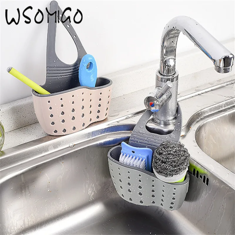 Kitchen Accessories Utensils Organizer Adjustable Snap Sink Soap Sponge Holder Kitchen Hanging Drain Basket Kitchen Gadgets-S